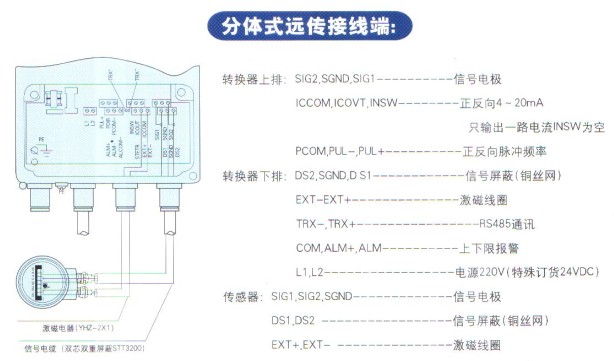 • 電磁流量計若采用分體安裝連接的信號電纜采用定制的專用電纜線,電纜線越短越好。